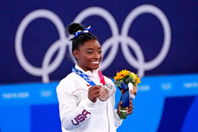Competing for the first time since withdrawing from the team competition a week earlier with a case of “the twisties,” Biles won the bronze medal in Tuesday night’s balance beam final, her seventh career Olympic medal, tying her with Shannon Miller for the most by a U.S. gymnast.